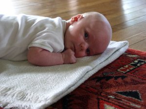 I am looking into Leif’s newly eye-locking five-week-old eyes these days, and wondering. What does he see? Does he see me? Or just beady black circles ringed with blue, white, peach, and brown?