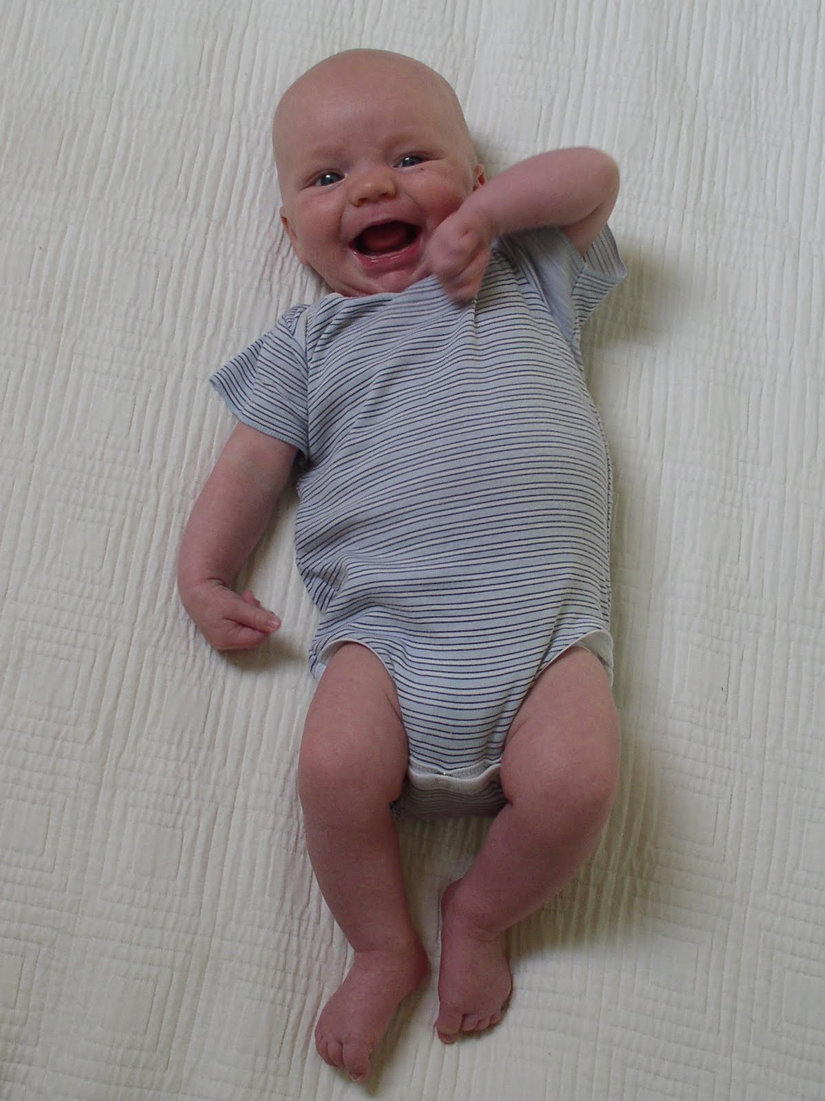 Leif is now nine weeks. He can’t feed himself. He can’t stand and walk. But he can smile. Could his smiling be as essential for his survival?