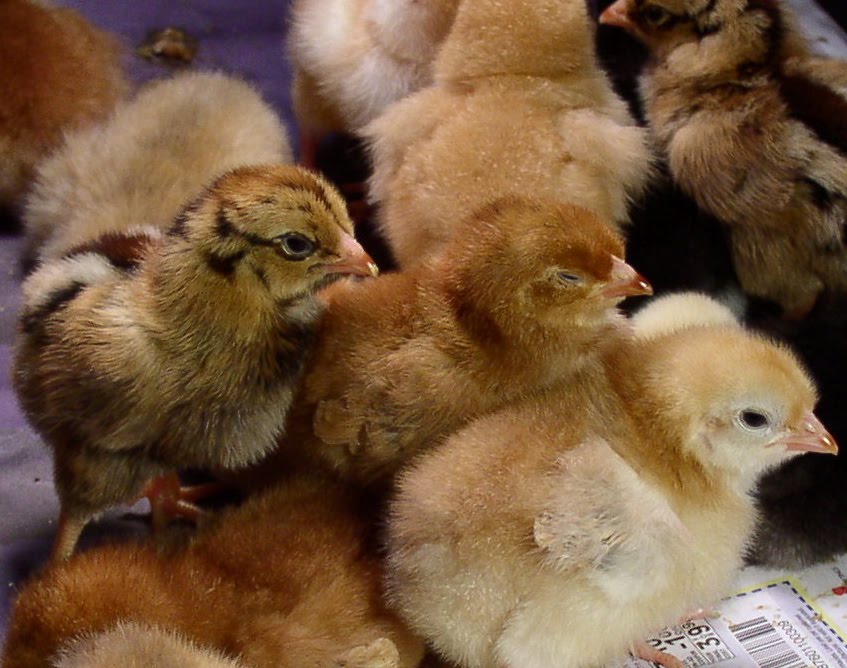 Take the chicks. From the moment we opened the peeping package we picked up at the post office, these fluff balls on toothpicks have been moving constantly—pecking, preening, poking, scratching, scooping water and tipping up their chins so that the drink runs down their throats.