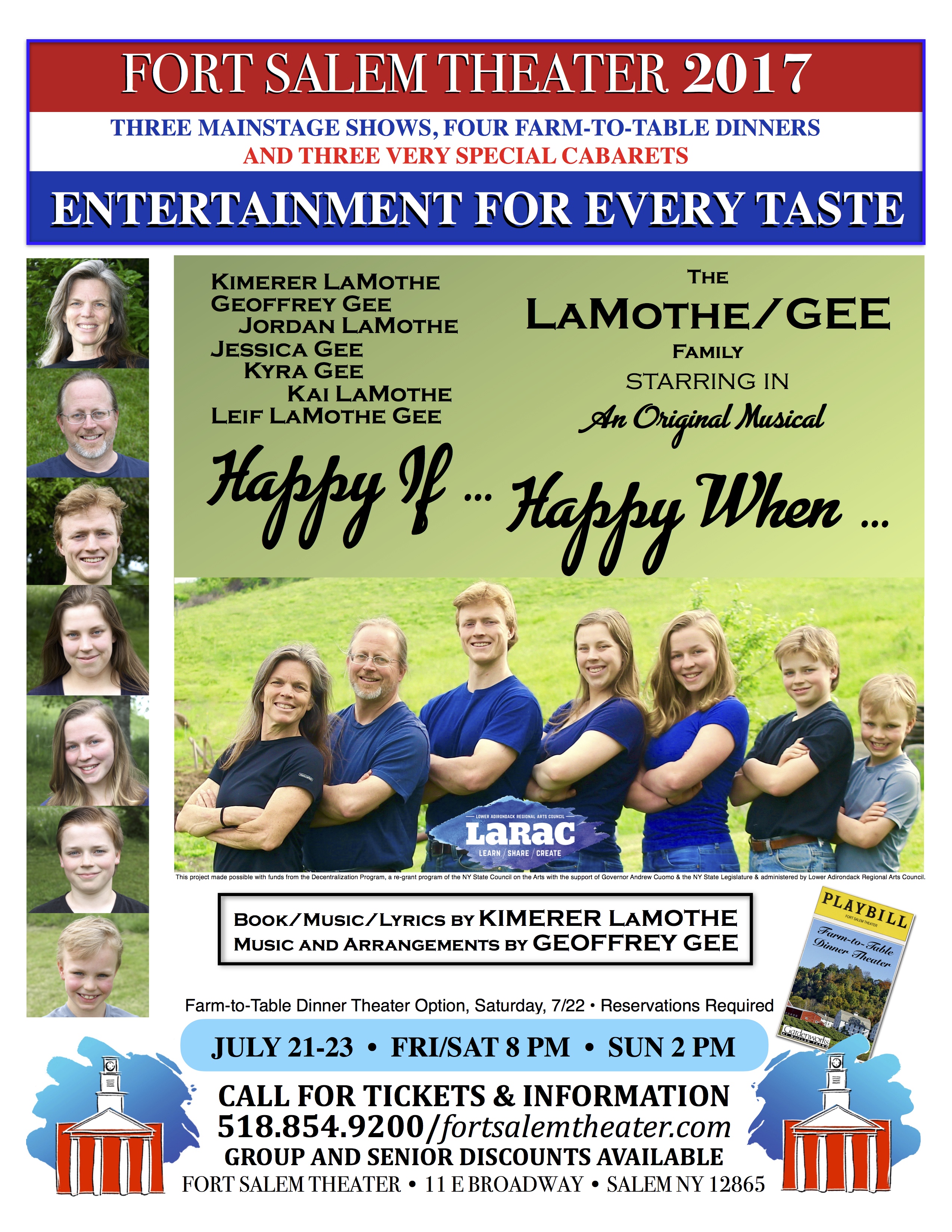 July 21, 22, 23, 2017. Fort Salem Theater, Salem, NY, Artistic director Jay Kerr produced a three-show run that featured the seven members of the LaMothe Gee Family, and a four-piece band including drums, bass/guitar, violin, and Geoffrey on piano.